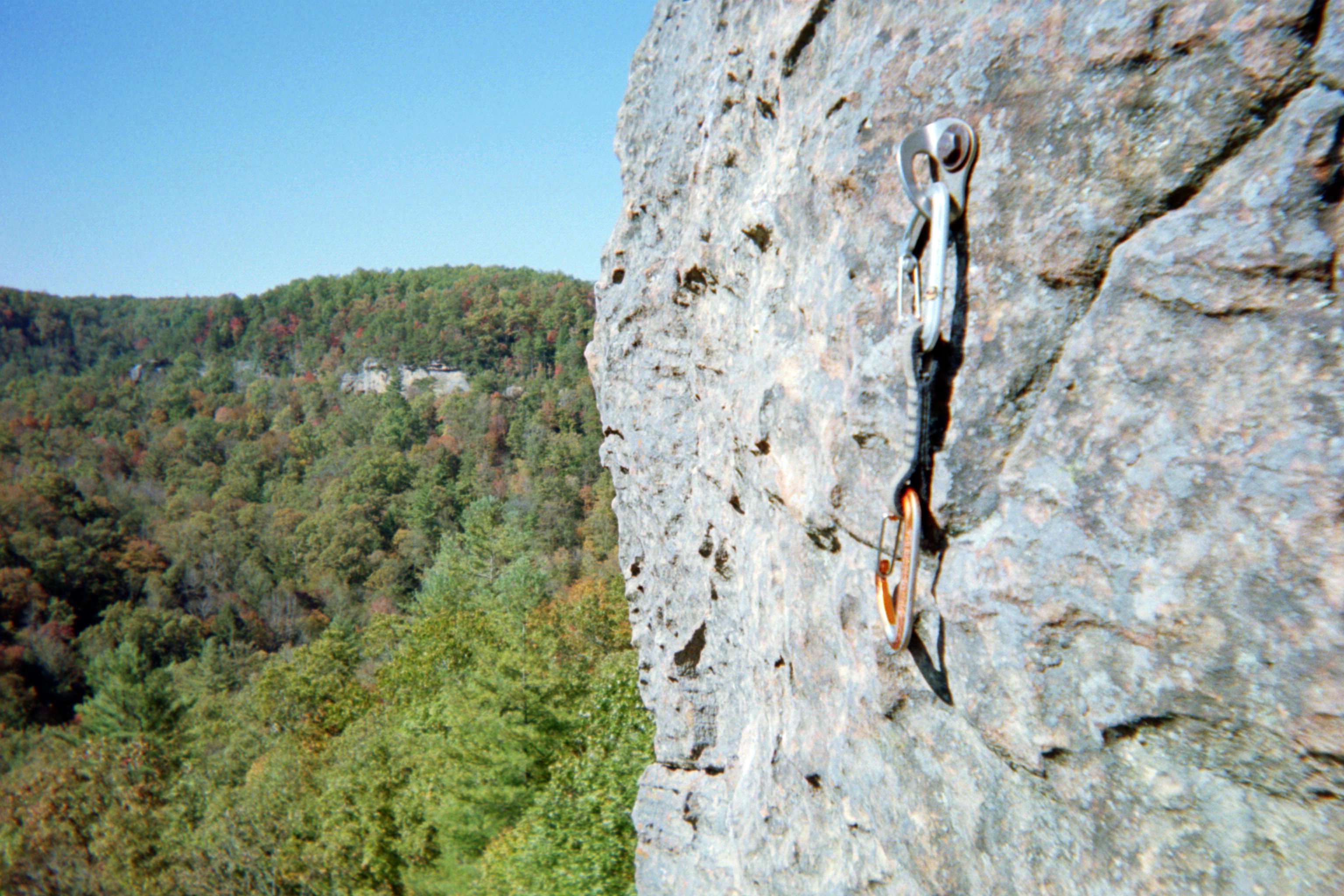 Finally I arrived at the bolt. In order to clip, I would have to step out onto the face. I glanced down, looking at the drop under me. I quickly stepped out and clipped in before my mind could process the height.
