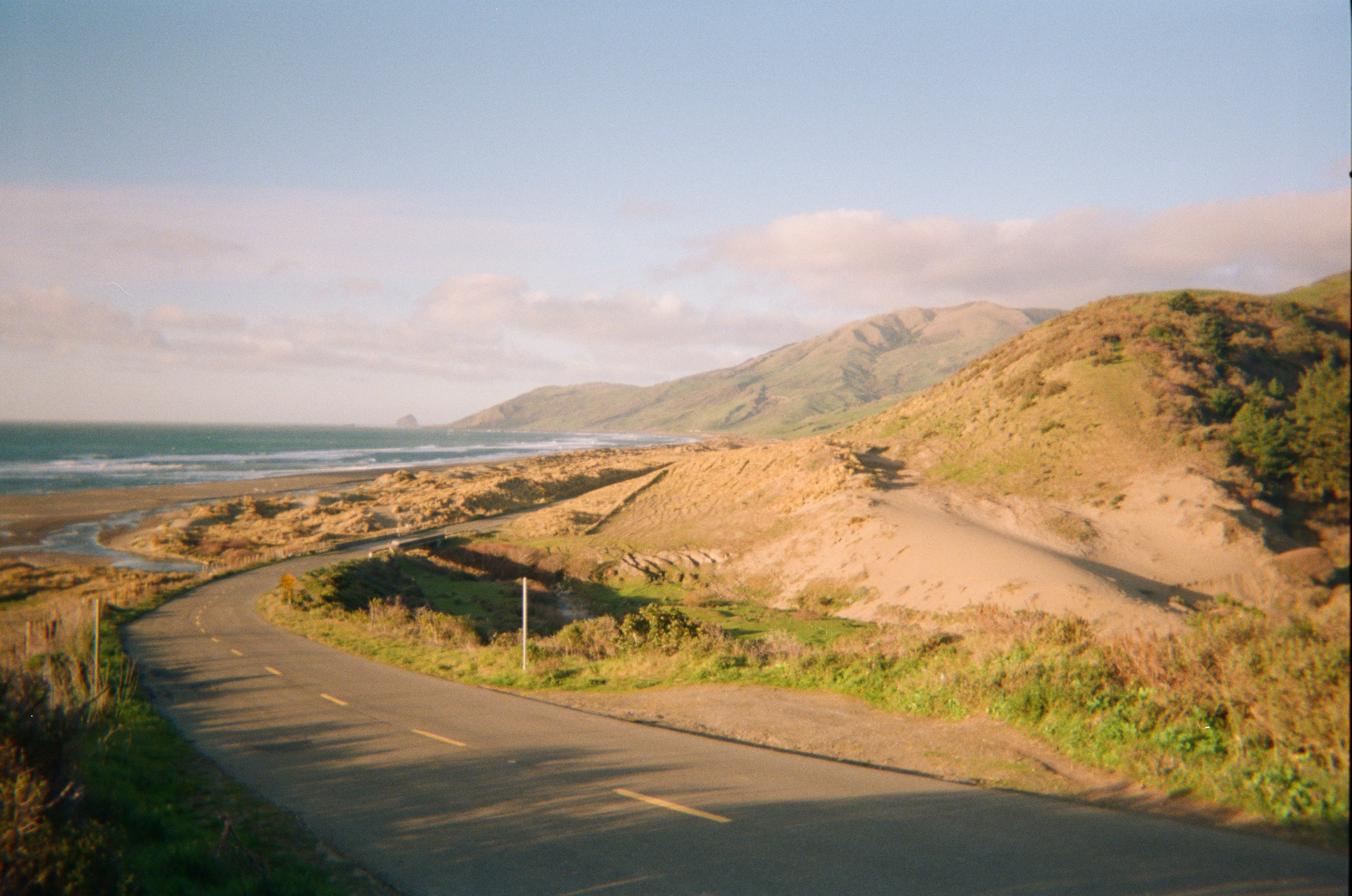 Finally after a couple hours the I am able to begin moving my body again. I manage to pull my jacket on and get out of the car to take in the scene. The rain has finally subsided, and the sun is beginning to emerge from under the clouds to make the most glorious sunset, illuminating the hill behind me and manifesting the iconic California golden hour. I fish a half finished bottle of red wine from my food bin in the back of the car and stroll down to the beach, taking in the enormity of the cape and all that is before me. As I stand there and bask in the place, the grief hits me. It engulfs me, and I am brought to my knees. I sink into the black sand and watch the sun set, sobbing harder than I’ve ever sobbed before, and watch the sun slowly sink beneath the horizon.